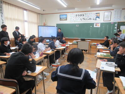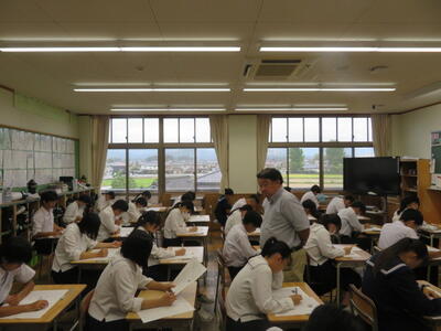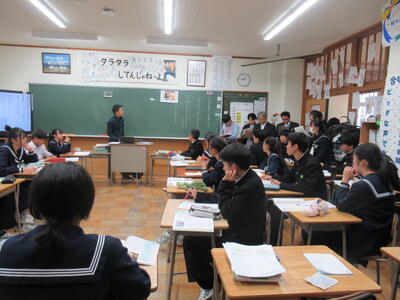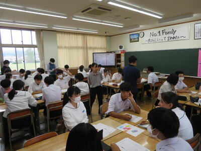 9月22日(金)6限、3年5組で中新川郡中教研特別活動部会研修会が行われ、研究授業があり、学校外からも先生方がいらっしゃいました。