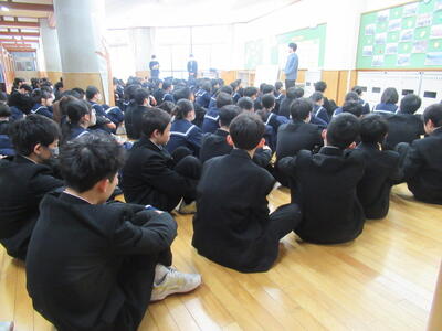 集会が終わった後も、生徒たちは静かに教室まで戻りました。