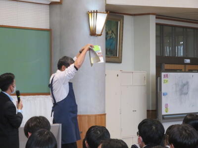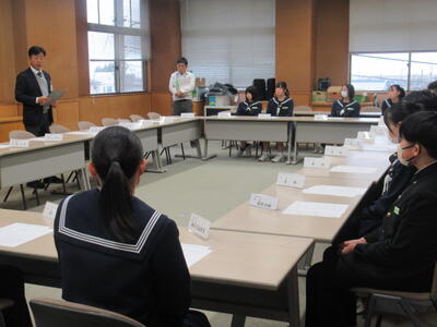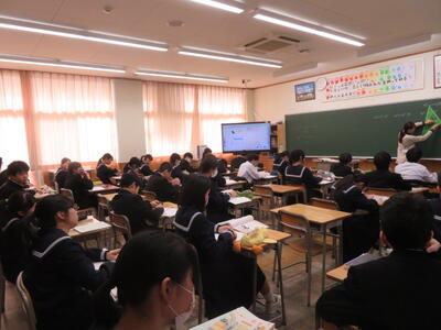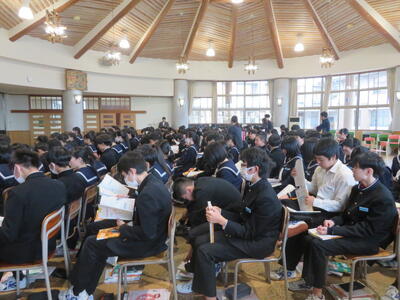 生徒たちは、配付されたテキストをみながら、説明を聞いていました。