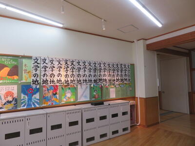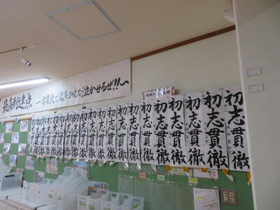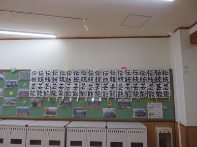書き初め大会の優秀作品(金賞・銀賞)が各階多目的ホールに掲示されました。