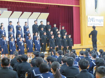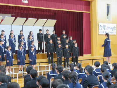 未成年の主張を行いました。3年生の各クラス代表者が、お世話になった先生方にメッセージを伝えます。「俺には、言いたいことがある~!」「イエーイ!」から始まる彼らの主張には、温かい言葉が多かったように思います。