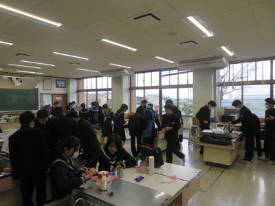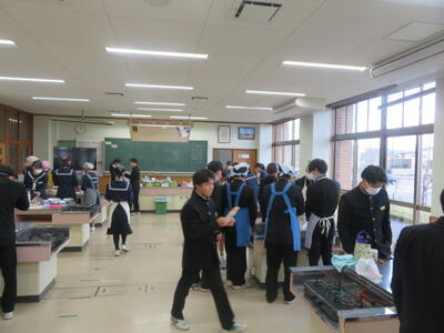 3年生が調理実習を行っていました。班になり、それぞれの班で自由に調理をするようです。ケーキやクッキーを作る班もあれば、たこ焼きを作る班もありました。料理に慣れていない生徒もいましたが、みんなで協力しながら活動をしていました。仲間と大切な時間を過ごし、卒業してからも素敵な思い出になりそうですね。
