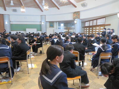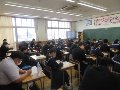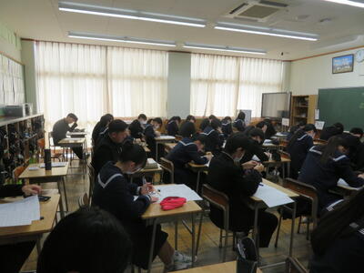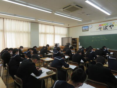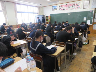 受験用のまとめプリントに取り組んでいました。受験本番のような雰囲気で、集中して頑張る姿がありました。いよいよ2月に入り、どの教科も受験に向けて、本格的なテスト対策をしているようです!