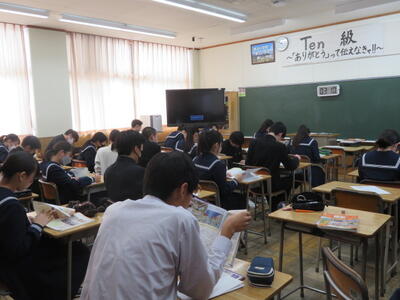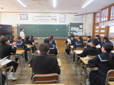 文法のまとめプリントに取り組んでいました。さすが受験生という雰囲気でした。6限目で1日の疲れもあったと思いますが、3年生、よく頑張っています。