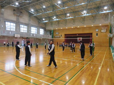 外では、雪が降り始めました。体育館を取材すると3つのクラスが活動をしていました。