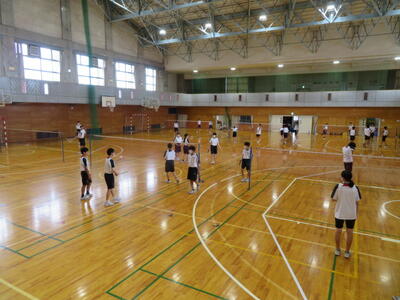 2年5組は学期末の学級レク(バドミントン)に取り組みました。