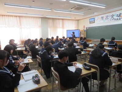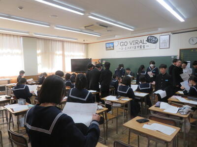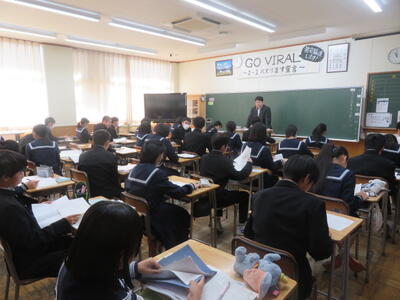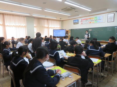 たくさんの先生方が参観に来られていましたが、生徒達は落ち着いていて、いつも通りに授業を受けていました。