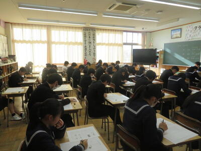 今月、3年生は、中教研テスト・到達確認テスト・期末テストと3回テストがありますが、ここまで2回のテストはどちらも粘り強く頑張っています。