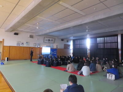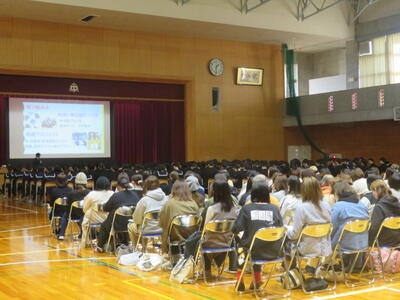 3年生は早めに給食を食べて、間もなく体育館に集合しました。