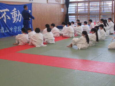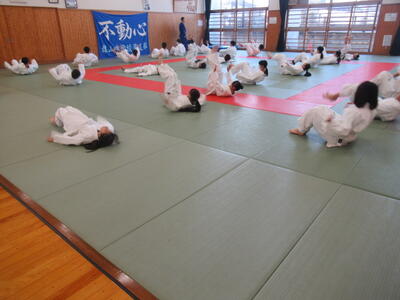 後ろ受け身のポイントを聞いた上で、みんなで練習しました。