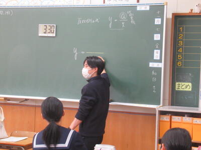 反比例の性質について、X(エックス)の変域を変えるとどうなるかについて学習しました。