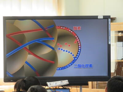 「呼吸のはたらき」について学んでいました。動画を見ながら、体に酸素が取り組まれる仕組みを学んでいました。教科書でも詳しい説明が載っていますが、動画で見るとさらに理解しやすいようです。
