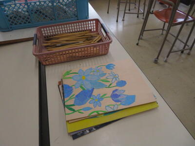 彫刻の下絵を描いていました。それぞれ自分の好きな下絵を自由に描いていました。夢中になって下絵を描いている生徒、友達と見せ合いアドバイスをし合う生徒、各自のペースで作業を進めていました。自分の好きなものを自由に描けるので、生徒達は楽しそうに活動をしていました。好きなものを描いたり、話したりしている生徒の笑顔は輝いてみえます。何かを「好き」という気持ちは生徒達にとって最大のモチベーションになっているようです。