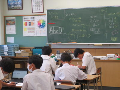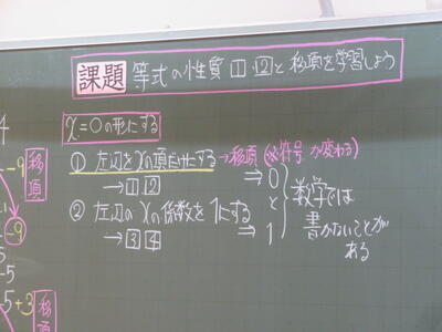 授業の後半で、二次方程式の演習問題に取り組んでいました。