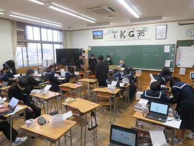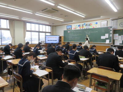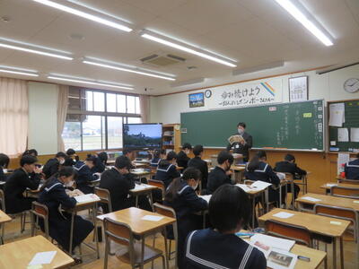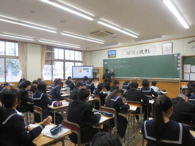 訪問した時は、範読(資料を先生が読んで聞かせる)をしているところでした。範読は抑揚がありとても聞きやすいと感じました。生徒達のお手本になっていると思いました。