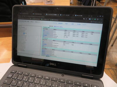オーロラクロックのプログラミングを行っていました。タブレットの画面を見たら、難しいコードが書かれていました。生徒達は友達と協力しながらコードを書いていました。完成したコードを転送するとそれぞれのオーロラクロックが七色に光るそうです!クリスマスに向けたイルミネーションをつくる予定だそうです。お昼の校内放送で披露されるとか・・・楽しみです。