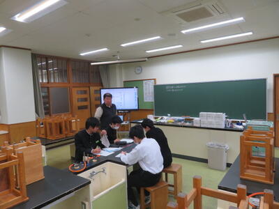 隣の第3理科室では、3Bの生徒達が「道具を使うと、仕事の大きさはどのように変化するだろうか」という課題を学んでいました。