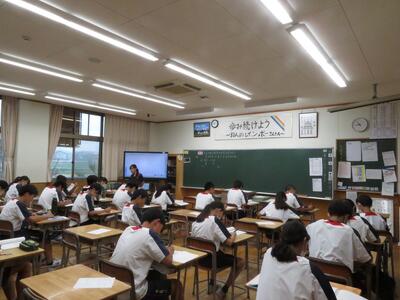 「色々な方程式を解いてみよう」という課題に取り組みました。代表生徒が前に出て、演習問題を解いていました。他の生徒がどのように方程式を解いていくか、その過程を見ることで学びがあります。集中した雰囲気の中で、生徒達はどんどん新しい演習問題にチャレンジしました。