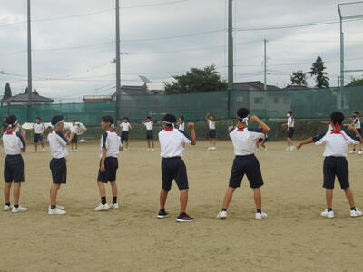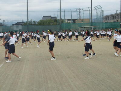 3年生が緊張しながら1,2年生に声を掛けて踊りを教えます。次第に元気のよい声を出すようになり、少しずつ一体感が生まれます。最後は競技を越えて楽しく踊ることができればよいと思います。