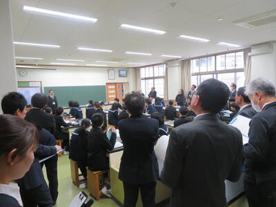 研究大会で、小学校、中学校、高等学校の先生方がたくさん参観されました。みんなの心に残る授業になったのではないかと思います。
