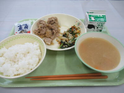 12/12(金)今日の給食献立 投稿: 雄山01 (13:00) 本日のメニューは、牛乳、ごはん、なめこ汁、豚肉の生姜炒め、ひじき和え、味付け小魚です。 豚肉は疲れをとる効果があると聞いたことがあります。 一週間の疲れもとってくれそうなスタミナメニューでした。