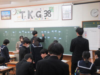 生徒は、分からない漢字をクラスメイトと聞き合いながら、みんなで仕上げていきました。