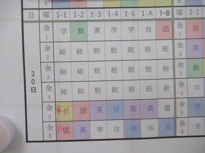 ※ 各学年の「②時間割変更内容」に記入されている部分だけ、教科を変更してください。